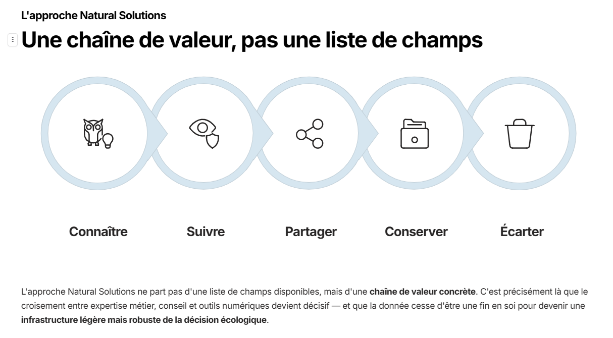 C’est précisément là que le croisement entre expertise métier, conseil et outils numériques devient décisif. Natural Solutions met en avant cette articulation entre accompagnement, structuration des projets et solutions numériques dédiées à la biodiversité. Cette cohérence entre conseil, produit et déploiement opérationnel est au cœur de son positionnement actuel.
